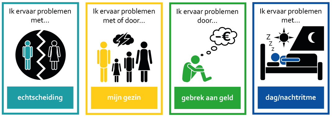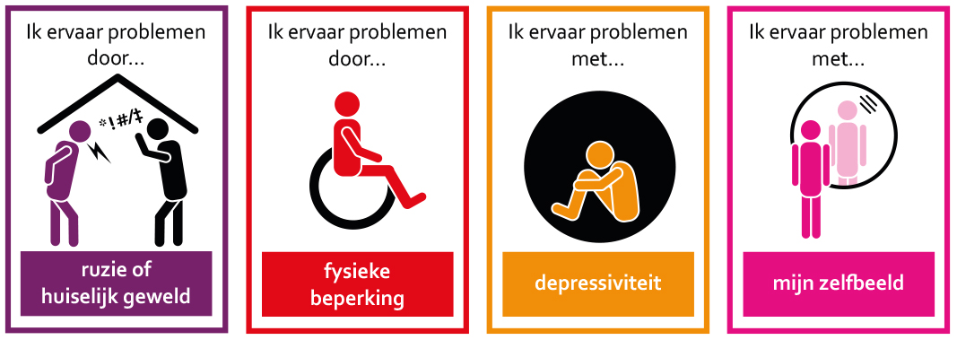 De inwoner kan alle problemen aanklikken die van toepassing zijn op zijn of haar situatie en kent aan ieder gekozen probleem een rating toe (in welke mate ervaart hij/zij dit probleem als last).
